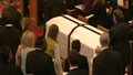 The "public" mourners included several hundred people who packed a balcony inside the church, as well another 150 supporters who gathered a few blocks away from the church for a counter-demonstration against a group of picketers from the controversial Westboro Baptist Church.