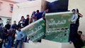 It showed men chanting pro-Gadhafi slogans, waving flags and singing around the Libyan leader's limousine as it crept through Tripoli. Scores of supportive demonstrators packed the roadway and held up pictures of their leader as fireworks burst into the night sky.