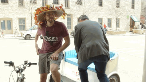 Enjoy the above video. It's not everyday a congressman rides around in a pedicab with a driver who is wearing a flower hat.
